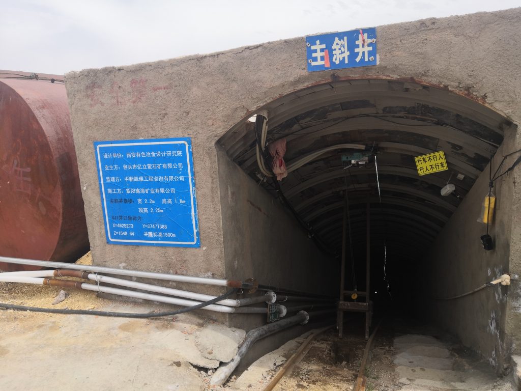 ,布置有主斜井及回風井。礦山原采用下盤豎井開拓